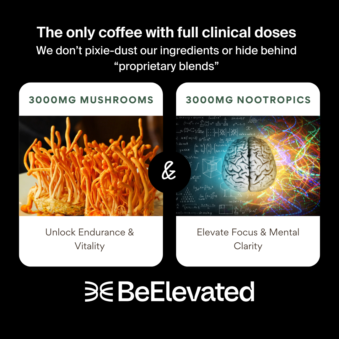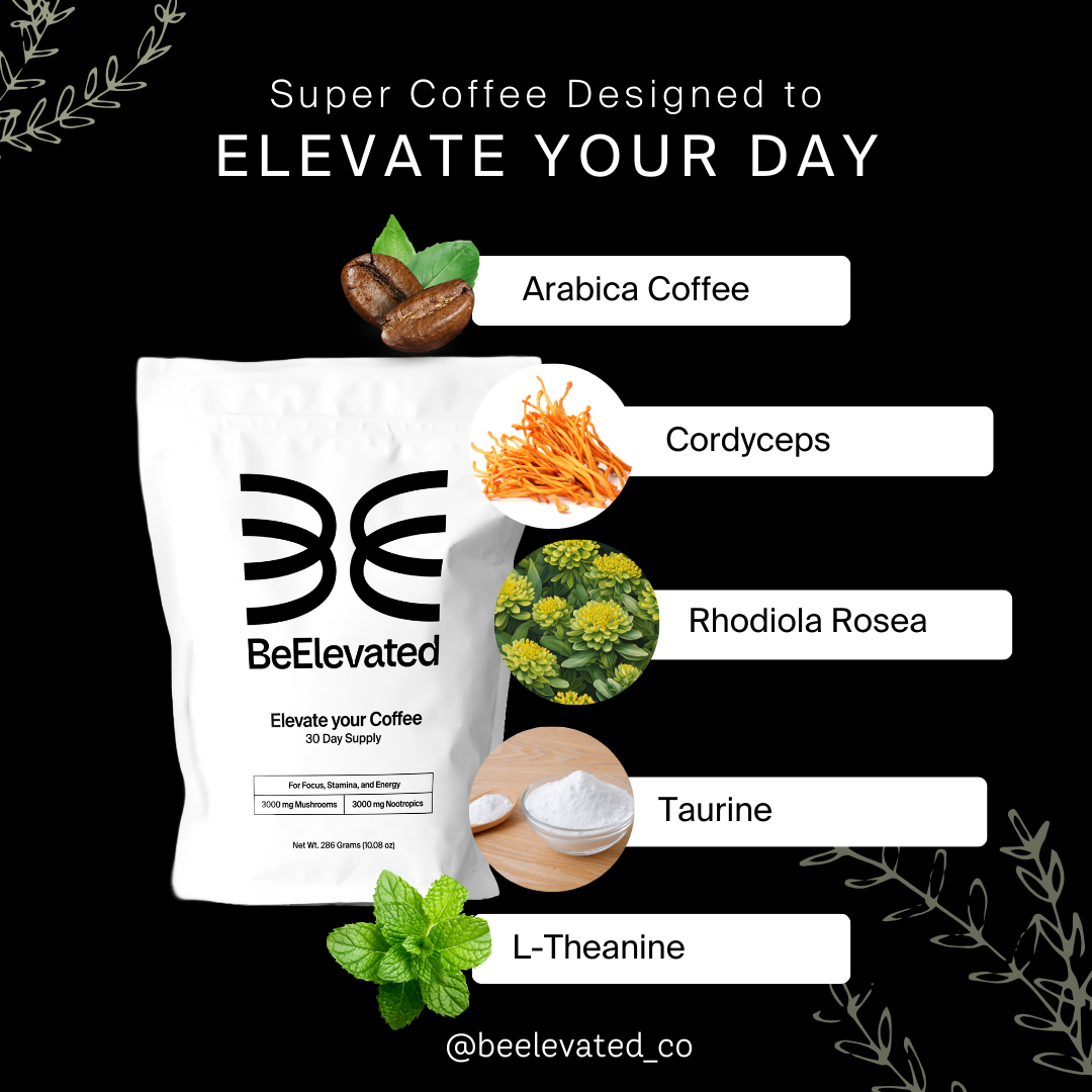 Elevate Your Coffee is a mushroom + nootropic super coffee that provides balanced energy, improved focus, and overall wellness. It's designed for those looking beyond standard caffeinated beverages. If you need something to power you through your busy day without the jitters, look no further! We researched and tested our ingredients for maximum impact without the fillers. We think you love this coffee so much that we provide a 30-day SATISFACTION GUARANTEE. So give it a try and elevate your day!